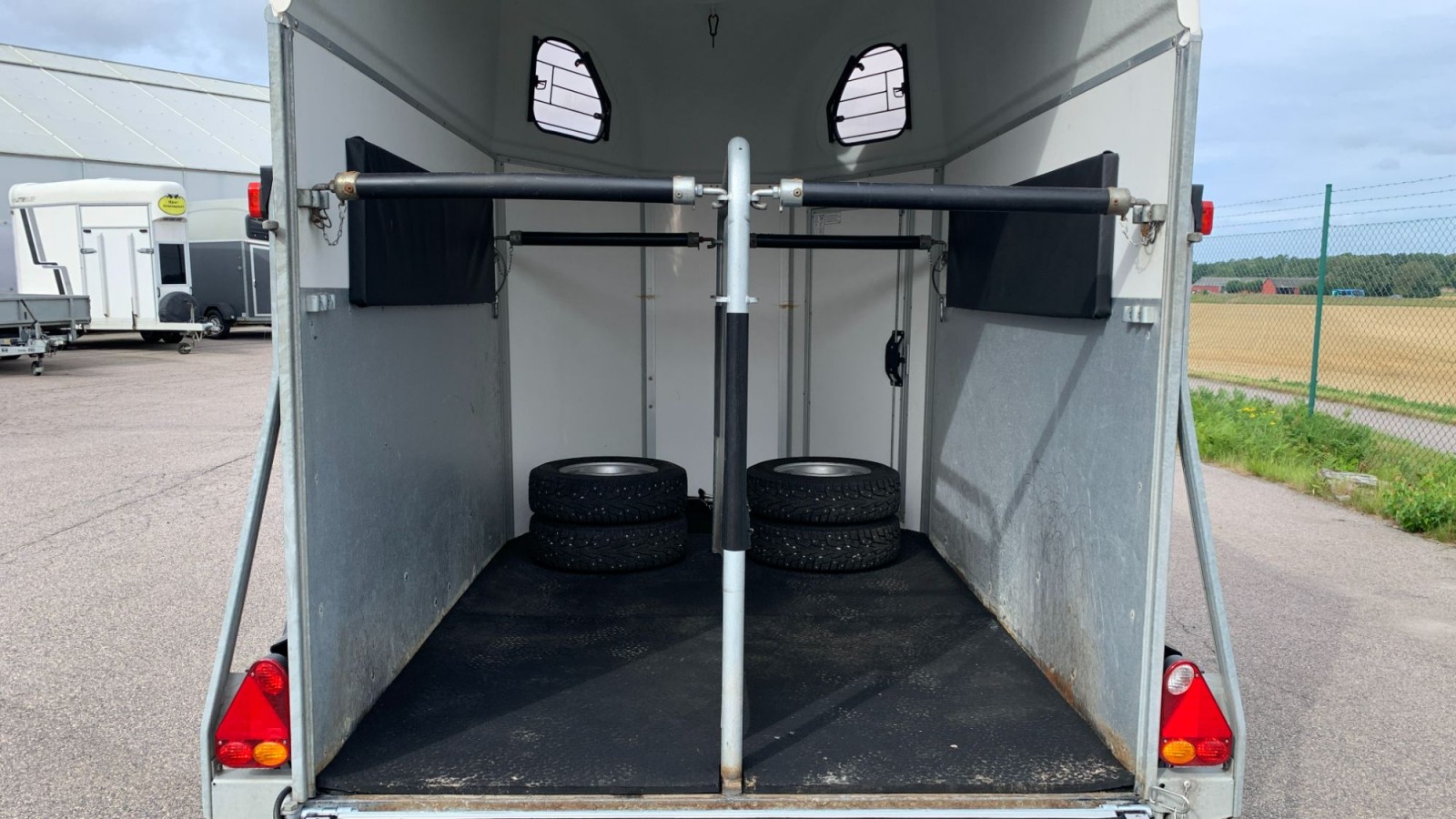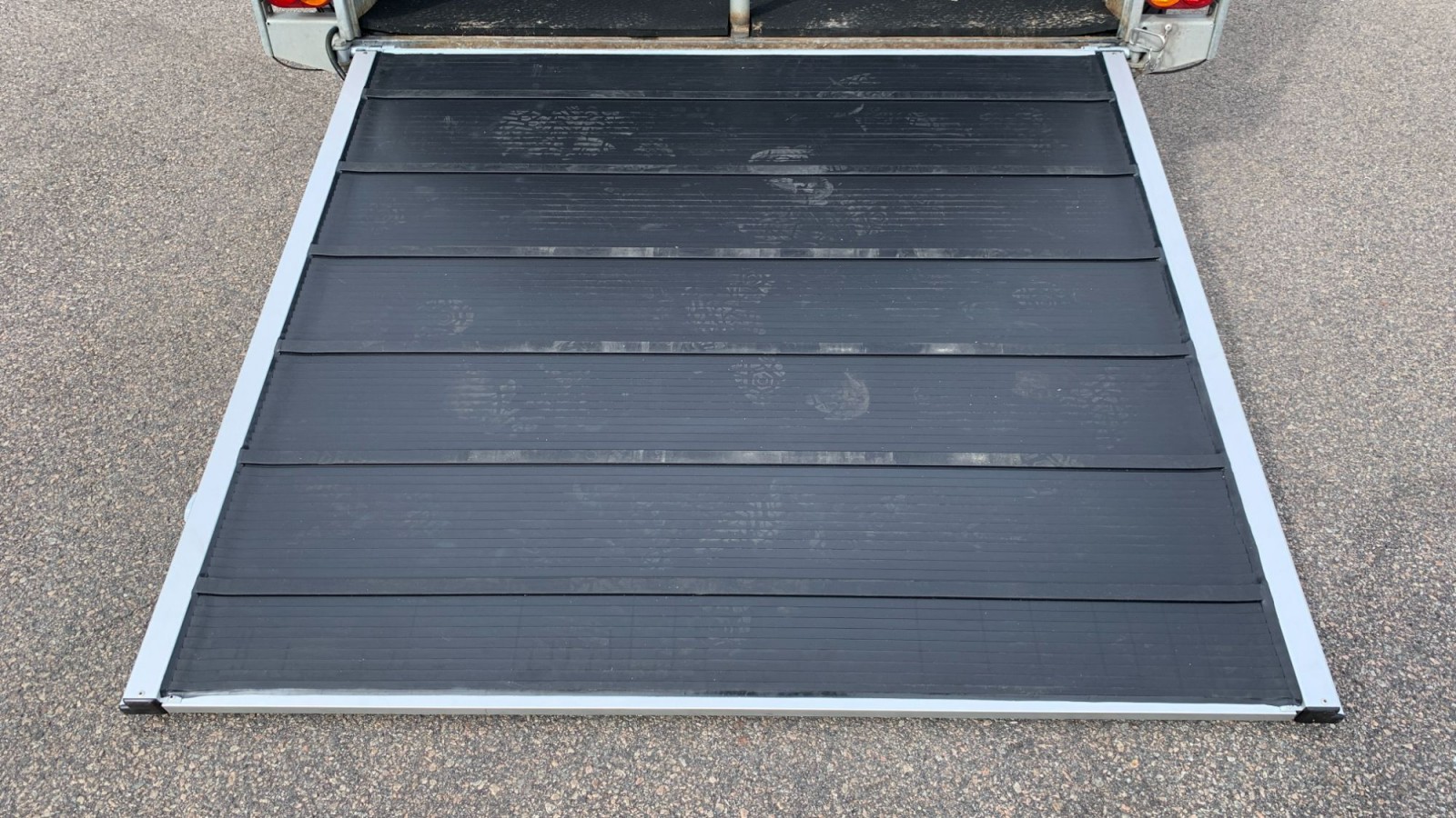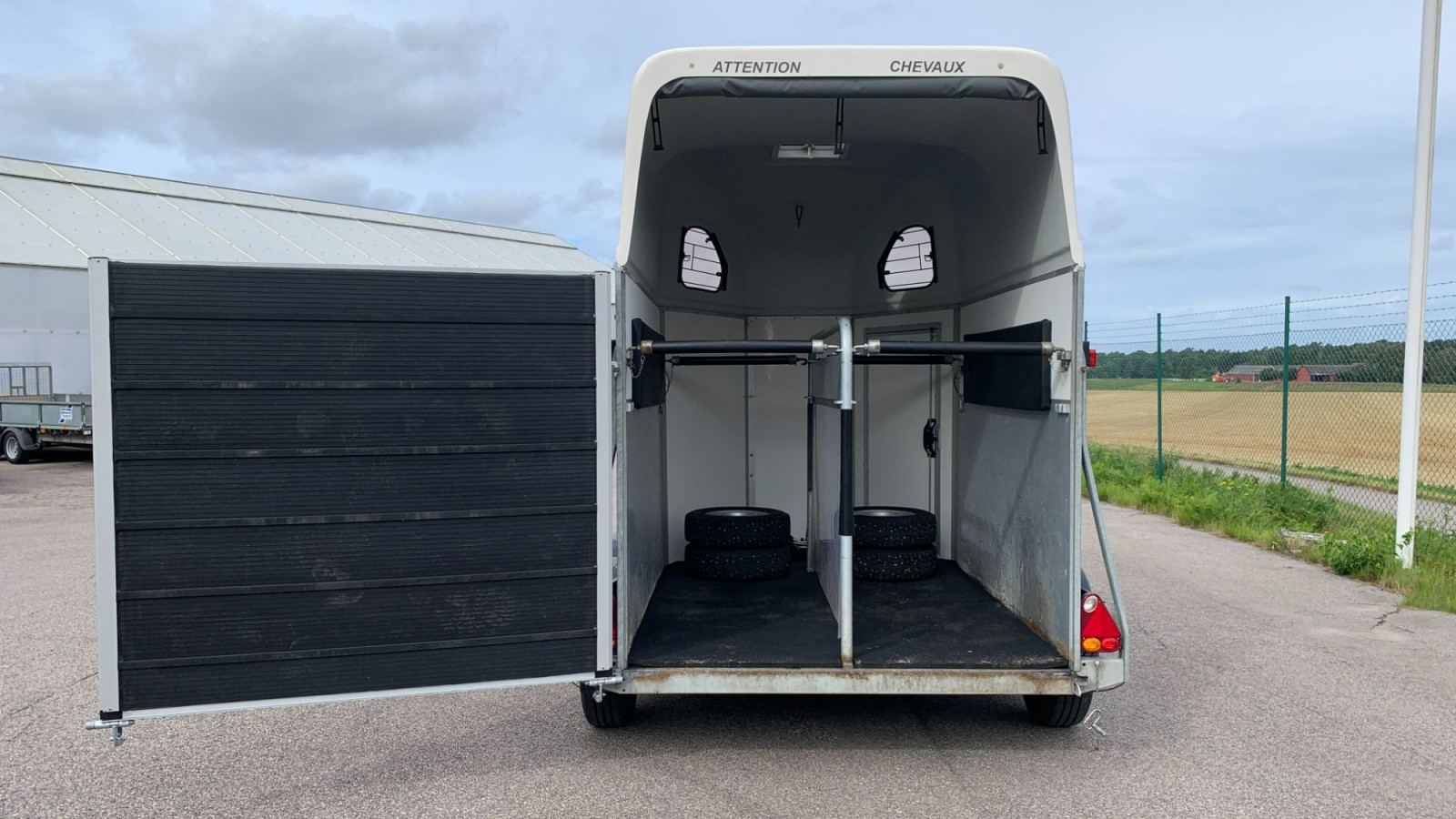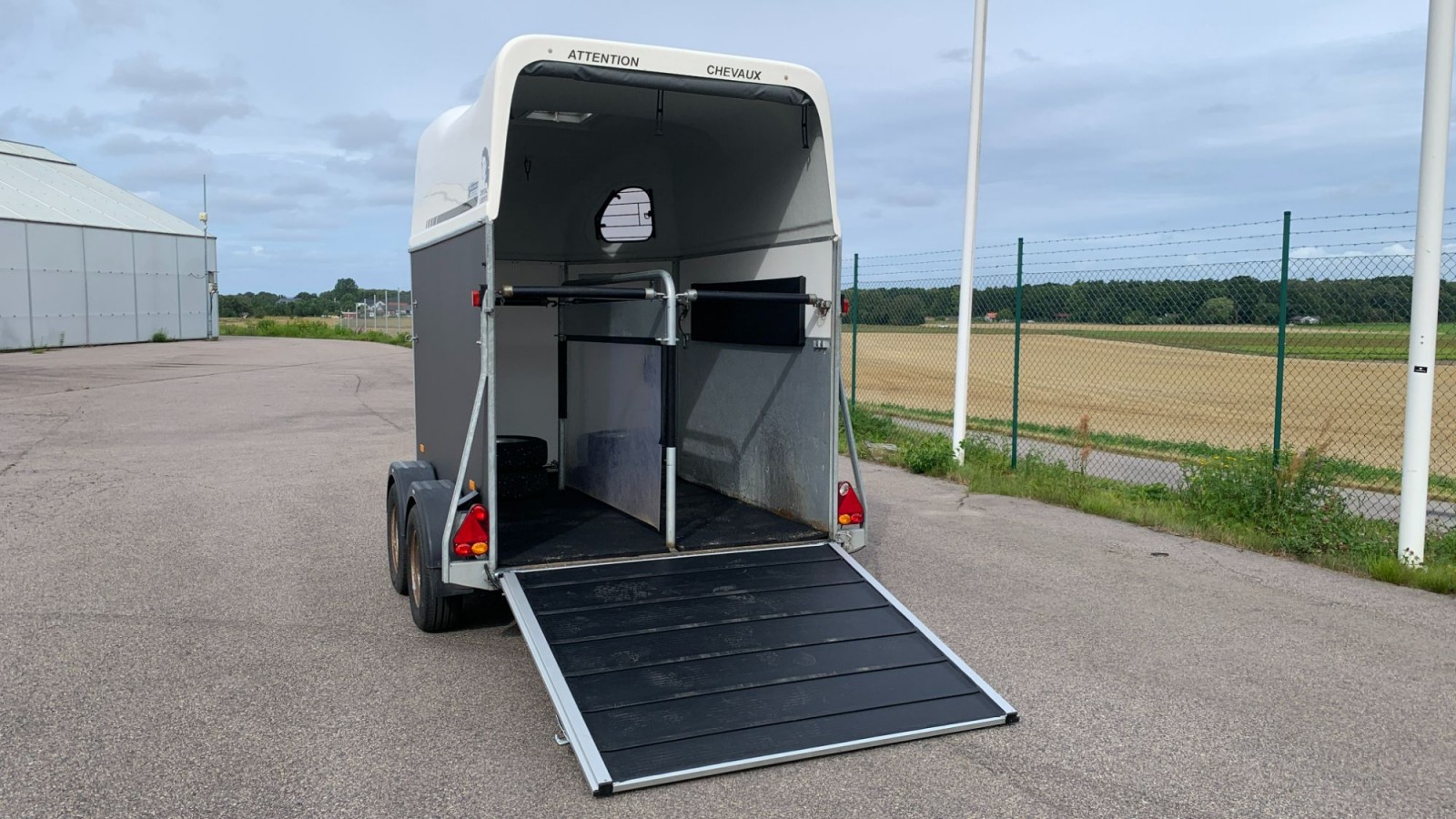 Bra exemplar som nu har blivit ett mycket bra exemplar!. Momsat. Utrustat med aluminiumgolv, broddmatta, sulkyfästen, kombiramp och 4 st kompletta dubbjul. Levereras nyservad av vår verkstad. Vi har bytt hela bakrampen mot en ny i aluminium! Vid servicen så byttes förutom rampen också alla bromsbelägg och bromsvajrar. Släpet har avlyftningsbar moms.Körkort