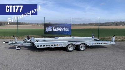 CT177 är på många sätt den ultimata biltransporten. Den är tillräckligt lång och bred för att köra även de största och längsta bilarna. Lastvinkeln är extremt låg vilket gör att de mest extrema banbilarna lastas av och på utan problem. Att den sedan har en maxlast på hela 2770 kg gör ju inte saken sämre. Biltransporternas Rolls-Royce!Egenvikten på släpvagnen / hästtransporten är i standardutförande.